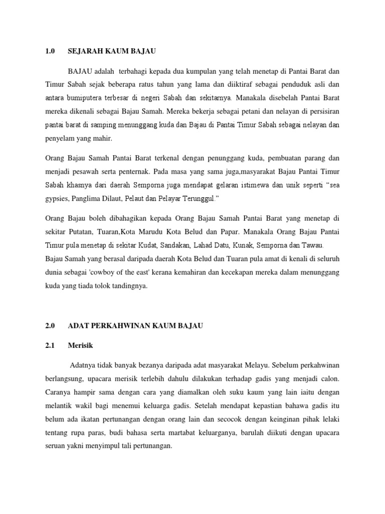 Suku Kaum Bajau Samah Suku Kaum Bajau Samah Adat Dan Budaya Yang Masih Diamalkan Adat Istiadat Perkahwinan Bajau Kota Belud Walaupun Adat Istiadat Etnik Bajau Studocu
